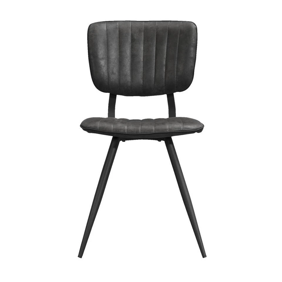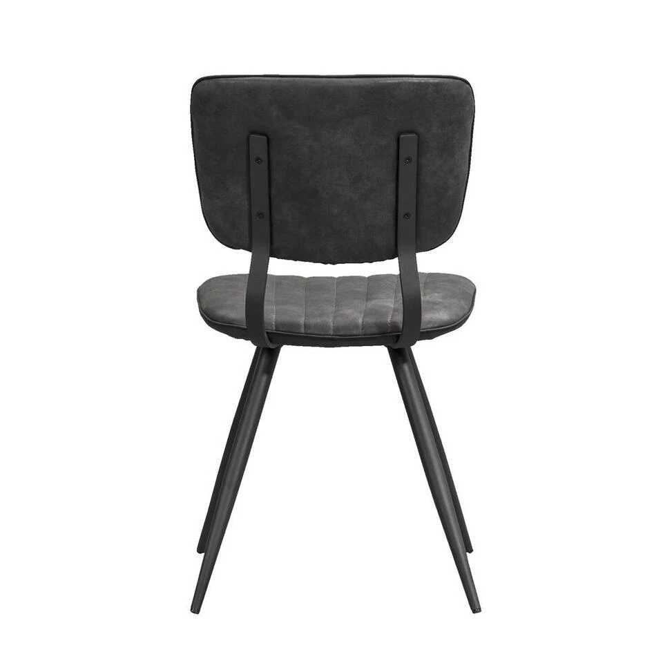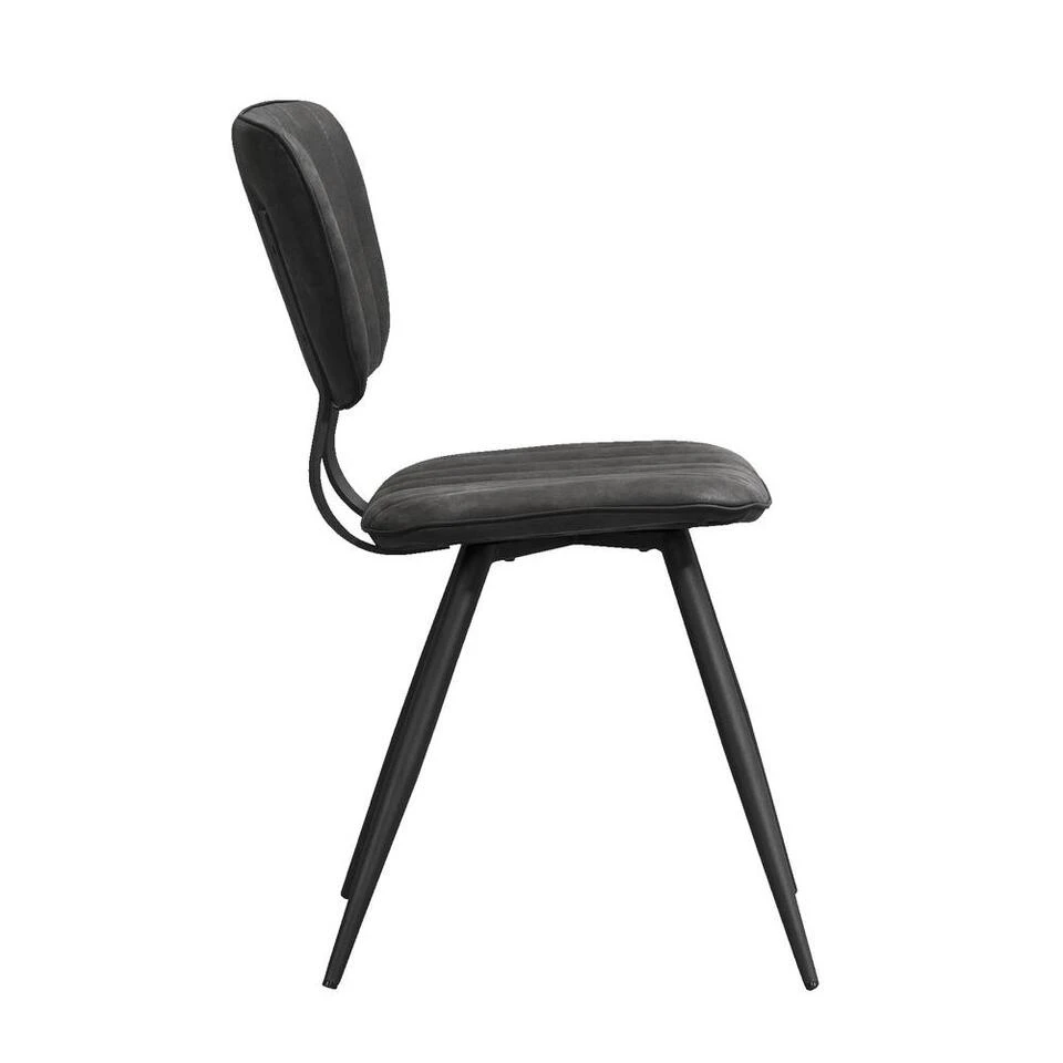 Eetkamerstoel Brim is een eenvoudige, maar opvallende stoel in je interieur. Deze stoel wordt gekenmerkt door een landelijk stoere look. Deze stijlvolle stoel heeft een rugleuning en zitting bekleed met stoffen bekleding in de kleur antraciet. Dit stoeltje staat op vier slanke pootjes van zwart metaal. De stoel zit comfortabel en heeft een trendy look. Zet deze stoelen aan een eetkamertafel van jouw keuze en stel zo je eigen eethoek samen.